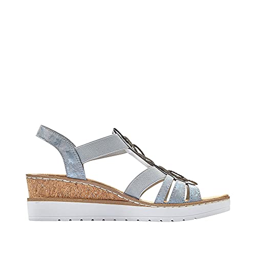 Rieker donna Sandali V38H8, signora Sandali,scarpa estiva,sandalo estivo,comodo,piatto,blu (blau / 12),42 EU / 8 UK