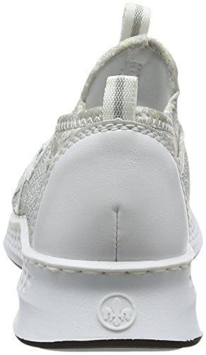 Rieker N5654, Scarpe da Ginnastica Donna, White/Silver/Silver Flower, 38 EU