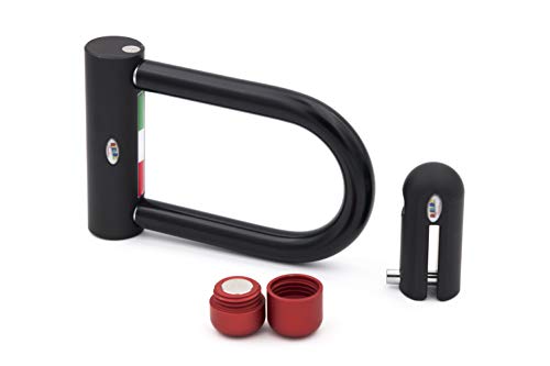 Rielda SH3, Lucchetto ad Arco in alluminio 18 mm + Bloccadisco ad asta 10 mm in Acciaio Temprato + Dispositivo di Riprogrammazione, 100% Made in Italy (Nero)