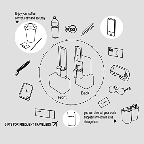 Libera le tue mani, vai in viaggio! Viaggiare può essere una seccatura e di solito non hai mano libera per tenere un drink, specialmente con i bambini. Ma con questo portabicchieri da valigia, ora puoi contenere due drink.