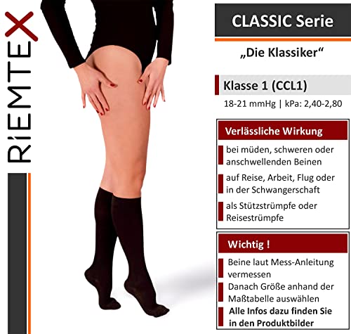 RIEMTEX Calze a compressione classe 1 CCL1 Calze di sostegno per uomo e donna pizzo chiuso nero o beige serie Classic 7111 (taglia 6, nero)