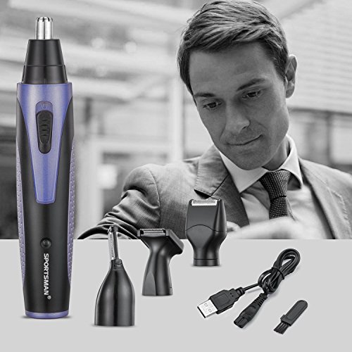 Rifinitore Naso e Orecchie, 4 in 1 USB Ricaricabile Rasoio da Naso, Sopracciglia, Tagliapeli, Basette e Barba Elettronico di Precisione per Naso e Orecchie (Blu)