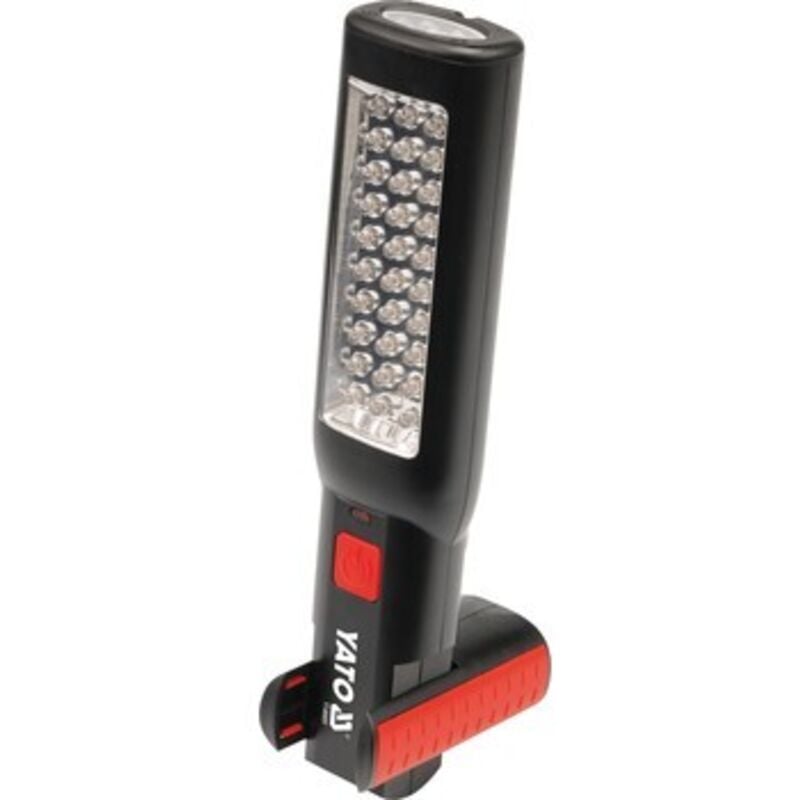 Dati tecnici Produttore: Yato Codice produttore: YT-08505 Dimensioni: 280x55x34 mm Materiale: PVC | magnete gommato: sì | sul retro Tipologia: LED Interruttore: SI Livello di protezione: IP20 Capacità della batteria: 1800 mAh Classe di isolamento elettrico: III Angolo di lavoro: 180° Funzione torcia: si | 7 LED Sorgente luminosa: 30+7 LED Numero di magneti: 2 Ganci: SI Numero di ganci: 2 Flusso luminoso: 85 lm Voltaggio batteria: 3,7 V DC Tipo batteria: Li-Ion Autonomia: 4 | 15 h Tempo di ricarica: 4-5 h Caricatore: Rete 230V~ 50Hz | Materiale paralume automatico 12V: PVC Colore paralume: trasparente Modalità di illuminazione: 100% | TorciaLampada da officina 30+7 LED 100LMModerna lampada portatile con diodi LED. Numero di diodi 30+7, luminosità circa 13.000 MCD. Ha una batteria NiMH da 3,6 V/12.000 mAh. Nel manico è presente un magnete che facilita il fissaggio della lampada alle superfici metalliche. Tempo di funzionamento: 7 LED - 15 ore 30 LED - 4 ore Tempo di ricarica: 4-5