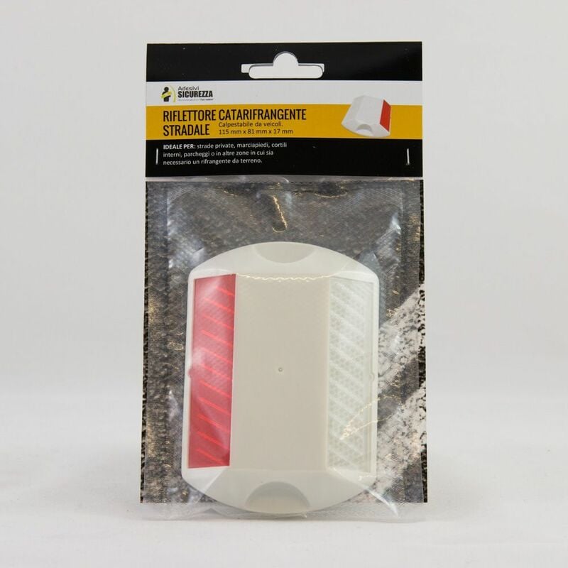 6 Occhi di gatto dimensioni: 115 x 81 x 17 mm . Il materiale è la plastica, il colore è bianco con riflettore bianco e rosso. Piccolo e super visibile lo potete usare su una strada privata, un marciapiede un cortile interno oppure un parcheggio o in qualunque altro posto dove avete bisogno di un rifrangente da terreno. Si può attaccare con un mastice o una colla forte . La struttura bassa consente il passaggio di veicoli come auto, moto o camion, con inserti rifrangenti per una massima visibilità,sono consigliati sia in ambienti esterni che interni come garages e parcheggi . PREZZO CONSIGLIATO PER LA RIVENDITA DI 1 KIT: 7,95 EURO