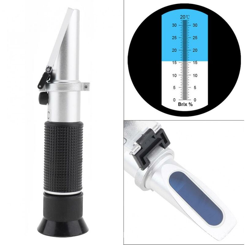 Utilizzo: È adatto per misurare miele, discorso, verdure, latte condensato e oli vegetali, dolci (sciroppi), marmellate di frutta, melassa e la concentrazione di bevande, zuppe.< /p> Campo di misura: 0-32% Brix (contenuto di zucchero), risoluzione: 0,2% Brix (contenuto di zucchero). Compensazione automatica della temperatura (10°C~30°C) e vite di calibrazione (calibrazione "0"). Facile da usare. Posizionare 2, 3 gocce di campione sul prisma principale, chiudere la piastra e guardare attraverso la finestra per leggere il valore Brix. Misurazione di precisione: linea di separazione netta (blu/bianca ), buona leggibilità (visibile alla luce del giorno), oculare regolabile per la regolazione della nitidezza. Calibrazione: calibrazione zero con acqua distillata a 20°C, compensazione automatica della temperatura tra 10°C e 30°C (ATC).