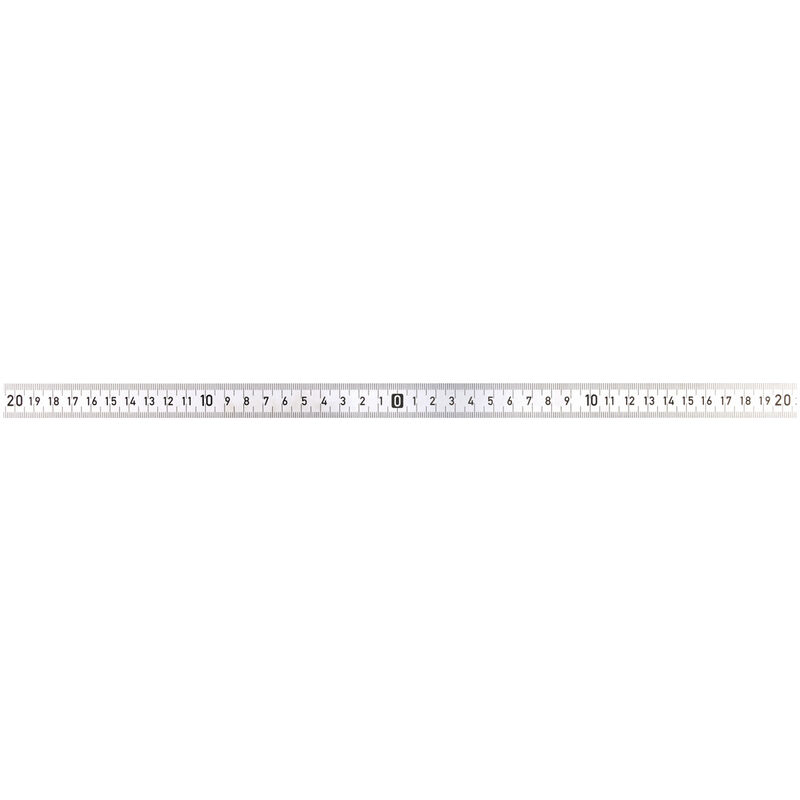 In nastro di metallo flessibile inossidabile. Tacche nitide di colore nero a incisione elettrolitica, cifre su superficie liscia. Facile lettura. Bordi arrotondati per evitare il pericolo di eventuali infortuni. Bordo superiore e inferiore con scala in 1 mm. Scala con punto zero centrale. Dati tecnici Materiale Acciaio legato, INOX Norma EG II Tipo di prodotto Riga Lunghezza, mm 1.000 Taratura F8 Larghezza sezione trasversale, mm 18 Spessore sezione trasversale, mm 0,5