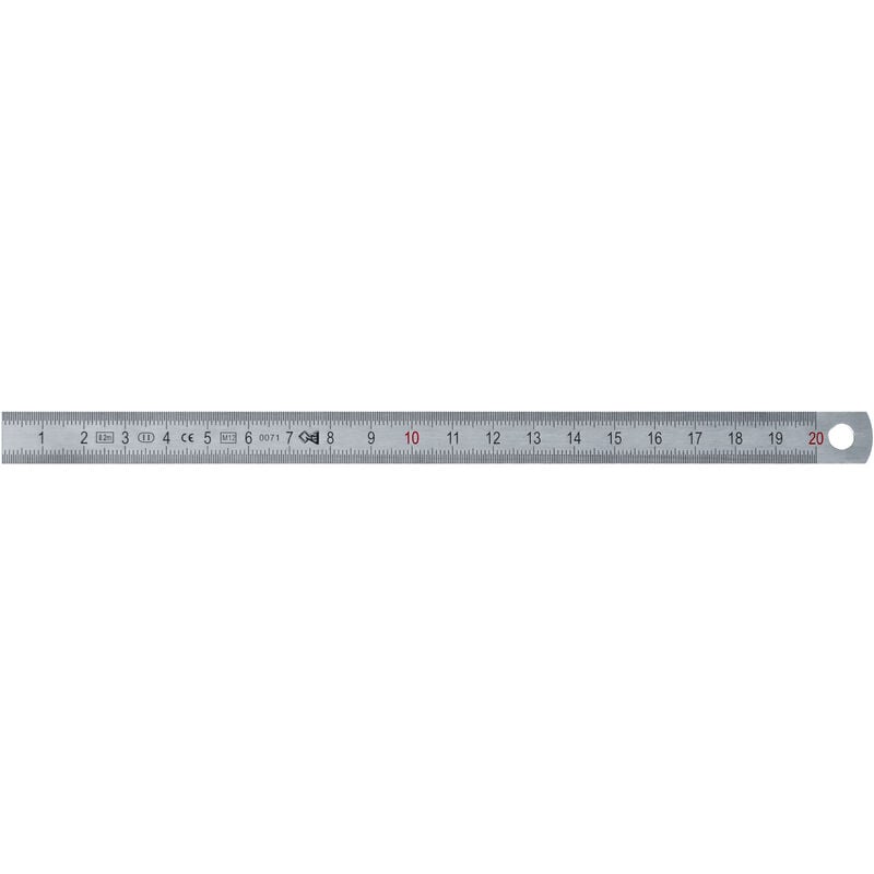 Righello semirigido in acciaio opaco. Graduazione incisa fronte e retro in 1/2 mm. Decine in rosso. Lunghezza: 1000 mm Larghezza: 30 mm