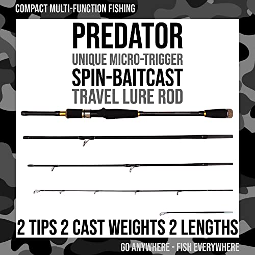 Rigged and Ready Predator Baitcaster Spin Canna da pesca da viaggio con micro grilletto. Canna da spinning Baitcast + 2 punte, 220 + 185 cm 0-30, 20-80 g