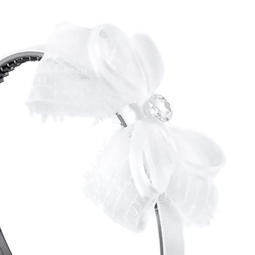 Righe e Pois - Cerchietto per capelli da bambina con fiocco bianco e pietra strass - cerchietto da cerimonia in raso - diametro 12 cm