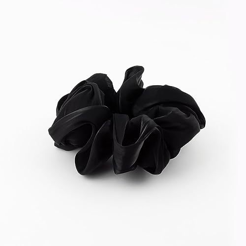 Righe e Pois - Elastico per capelli, fermacoda, scrunchie voluminoso in raso cangiante - diametro esterno 10 cm - 1 pezzo - elastico per capelli in tessuto elegante (Nero)