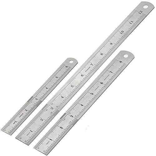 Set di Righelli in Acciaio Inossidabile, 3 set di Righelli in Metallo Inclusi Righelli da 30 cm, 20 cm e 15 cm.