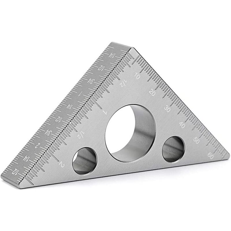 Realizzato in robusta lega di alluminio dopo il trattamento di ossidazione, questo righello triangolare per la lavorazione del legno è durevole, resistente alla distorsione, pratico, antiruggine e resistente alla corrosione.Le scale imperiali e metriche incise al laser sulla parte anteriore e laterale di questo righello angolare sono chiare e precise, rendendolo conveniente e facile da leggere o contrassegnare durante l'utilizzo. La dimensione complessiva è 2,67 x 2,67 x 3,74, leggera e portatile, facile da trasportare o riporre;