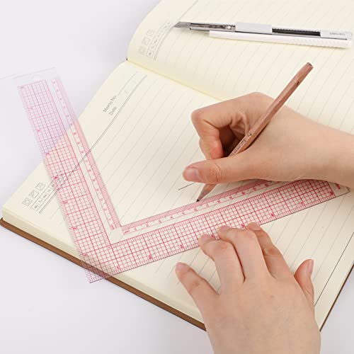 Righello da cucito in plastica con curva a L, 2 pezzi, misura da cucito trasparente, righello da sarto, righello per inquadratura a 90 gradi, righello metrico per strumenti artigianali su misura