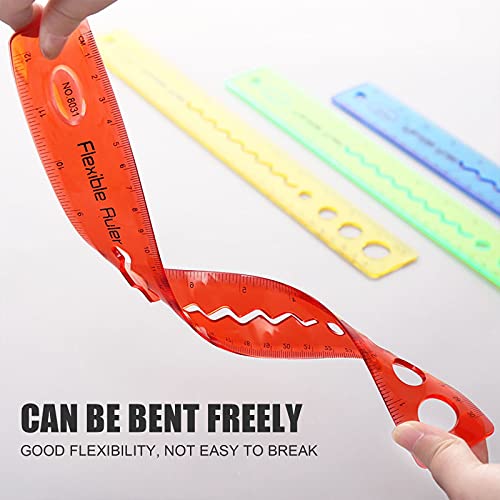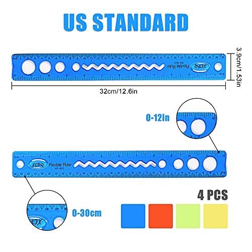 4 Pz Righello flessibile 30 cm Righello in plastica morbida Righello in plastica infrangibile con pollici e metrica Righelli a doppio lato Righelli pieghevoli per la scuola Righello multifunzionale