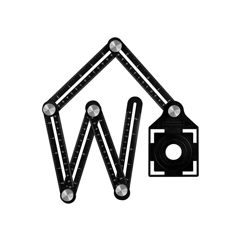 Ultima versione - Questo è uno strumento di misurazione con fori di posizionamento. Usa questo righello di misurazione multi-angolo per regolare la posizione di perforazione per contrassegnare con precisione le piastrelle. Il righello di misurazione può anche essere facilmente ripiegato e riposto per risparmiare spazio. Può essere facilmente trasportato in qualsiasi cantiere. Ideale per misurare l'area di mattoni, carta, pietra, piastrelle, legno e altri materiali. [Nuovo prodotto con materiale e design migliorati] Righello multifunzionale in lega di alta qualità e altamente resistente all'usura alluminio. Dotato di bottoni in metallo. Questi pulsanti sono molto più resistenti dei pulsanti di plastica e quindi più durevoli. I bordi arrotondati prevengono le lesioni. Nessuna elaborazione complicata. [Misurazione precisa] Il nostro strumento per dima multi-angolo è uno strumento di misurazione delle dimensioni preciso ideale, che può essere utilizzato per varie misurazioni di angoli