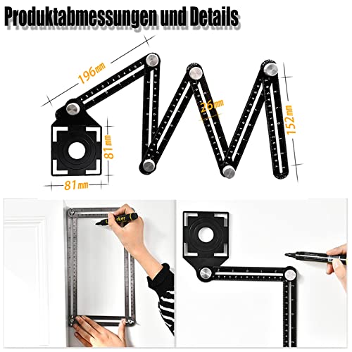 ❤ [Ultima versione] Con lo strumento angolare a 6 pezzi è possibile regolare la posizione di foratura ad esempio su B. Segnare le piastrelle con precisione. È uno strumento di misurazione e un posizionamento del foro integrato. Questo righello di misurazione è facile da piegare e riporre e può essere facilmente trasportato in qualsiasi cantiere. È molto adatto per misurare la superficie di mattoni, carta, pietra, piastrelle di ceramica, legno e altri materiali.