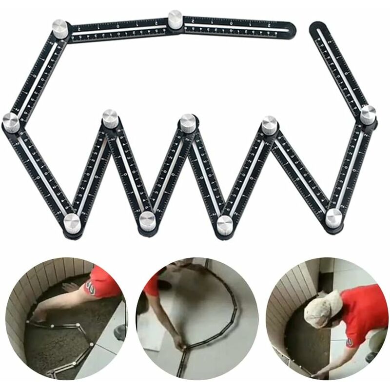 Materiale: questo righello di misurazione multiangolo è realizzato in lega di alluminio premium, non si rompe se piegato o arrugginito, più resistente e resistente di quello in plastica, lunga durata. 12 sessioni regolabili: Questo righello angolare ha un righello da 12 pezzi e manopole di metallo, puoi regolare le 12 manopole di metallo per creare con precisione la forma desiderata, quindi trovare la posizione per praticare il foro giusto. Con la piegatura su 12 lati, gli utenti possono facilmente creare e misurare angoli o forme speciali utilizzando lo strumento di rilevamento dell'angolo per migliorare l'efficienza del lavoro Elevata precisione: questo rilevatore di angolo è dotato di marcature incise a laser (pollici e centimetri) perfette per una precisione e misurazioni angolari precise. Ampia applicazione: adatto per progetti di lavorazione del legno, mattoni, piastrelle di ceramica, legno, vetro, pietra, laminato, edilizia e ingegneria! Può anche sostituire il righello