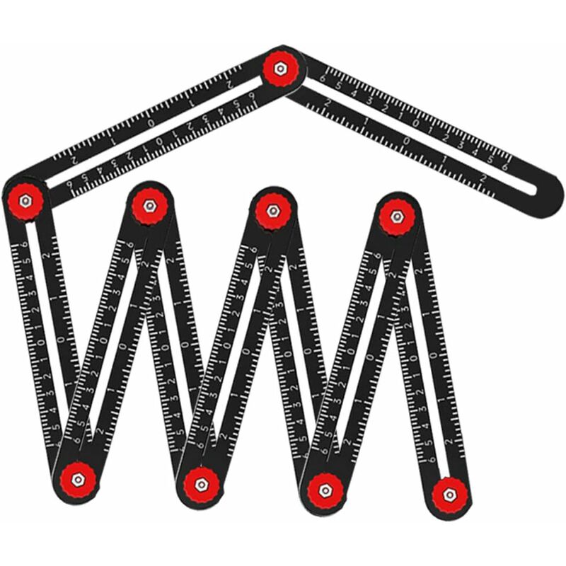 Mode d'emploi: Trouvez la position du trou, serrez tous les boutons. 2. Déplacez la règle sur le carrelage et marquez le trou. Percez un trou à l'endroit où vous avez marqué. 4. Placez le carrelage sur le mur. Caractéristiques: Matériau: alliage d'aluminium de 2,5 mm. Couleur: noir. Dimensions: 120 mm x 9 côtés. Système de mesure: pouces et centimètres. Précision de mesure: 1 mm. Objet: outils de mesure et de mise en page. Utilisation prévue: marquage du bois, angles pour briques pavées, espacement et jauge. Contenu de la livraison: Règle de mesure multi-angles à 9 faces