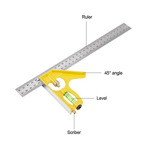 Righello quadrato a T in metallo, quadrato combinato scorrevole regolabile da 300 mm, strumento di misurazione per ingegneri con righello ad angolo retto, per la(Squadra combinata gialla (A10D09))