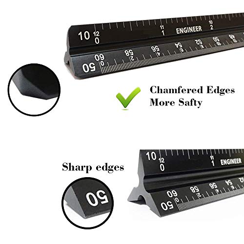 ✔ Qualità e bordi smussati: nuova scala triangolare aggiornata con bordi smussati, per una garanzia di sicurezza. Ogni design merita la qualità e la precisione che la bilancia triangolare Architect può fornire una sensazione leggera e durevole, rendendola facile da usare per qualsiasi progetto. Realizzato in alluminio anodizzato di alta qualità, questo righello fornisce che durerà una vita.
