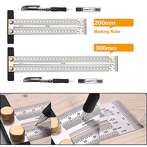 Righello Scrivente Acciaio Inossidabile Tipo T. Hole Ruler Regola T di Precisione Strumento di Misura per Carpentiere Posizionamento e Marcatura di Mortasa per Carpenteria con Matita Automatica(300mm)