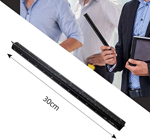 Righello Triangolare, 30cm Scalimetro Alluminio Nero, Righelli Scala per Architetti e Ingegneri 1:20, 1:25, 1:50, 1:75, 1:100, 1:125