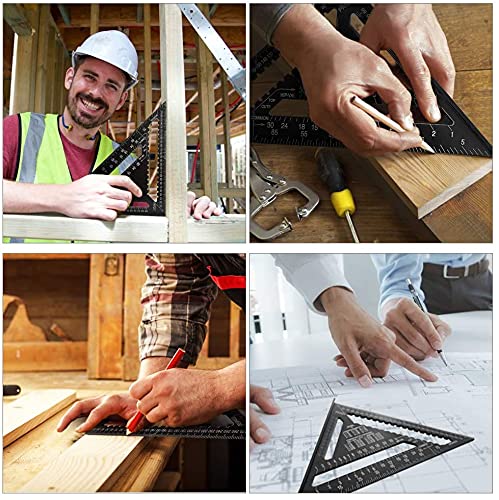 Righello triangolare - Goniometro quadrato da 12 pollici, righello triangolare in lega di alluminio Strumento di misurazione ad alta precisione per falegname ingegnere, nero
