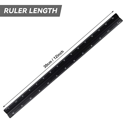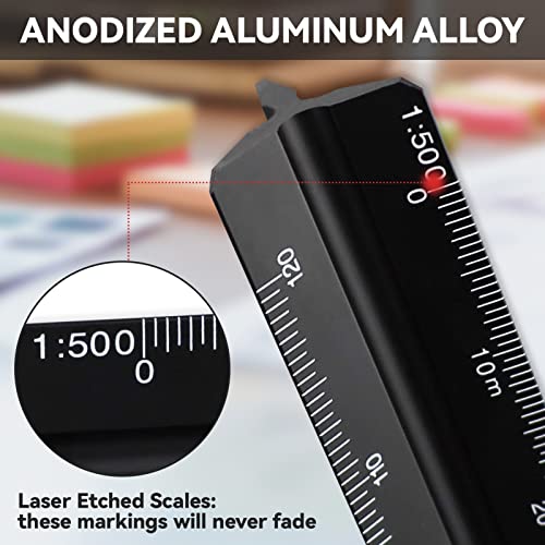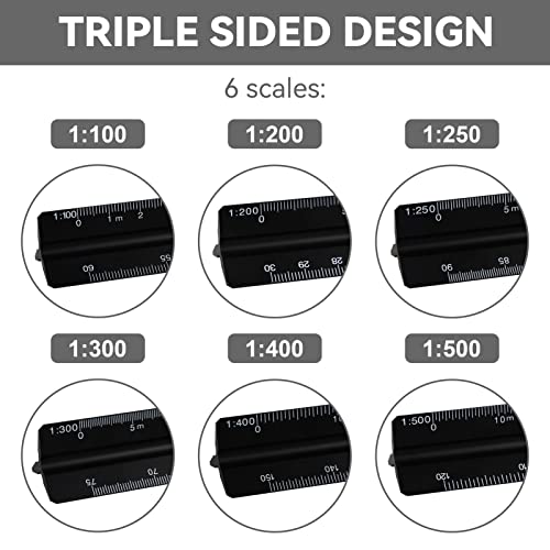 Righello triangolare in metallo per architetti, 30 cm, scala 1:100, 1:200, 1:250, 1:300, 1:400, 1:500 (nero)