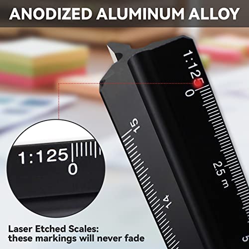 Righello 30 cm, Triangolare Scalimetro 1:20, 1:25, 1:50, 1:75, 1:100, 1:125, Nero