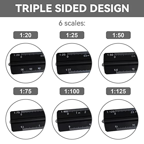 【Scala tutto-uno】Il righello della scala include 6 scale: 1:20, 1:25, 1:50, 1:75, 1:100, 1:125, adatto per esigenze comuni. Può essere facilmente misurato da destra a sinistra o da sinistra a destra.