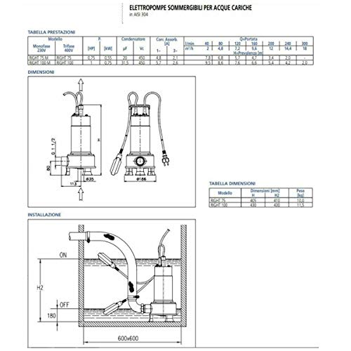 Pompa RIGHT 75 MA con galleggiante - HP 0.75 - KW 0.55