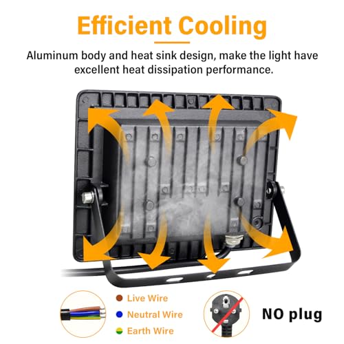 ◑ Eccellente dissipazione del calore: adotta alluminio pressofuso addensato, non solo garantisce la forza dell'inondazione di luce, ma anche il design convettivo della nuova aerodinamica termica ottiene un'eccellente dissipazione del calore e prolunga la durata delle lampadine.