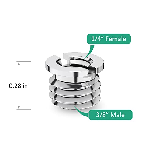 High Applicabilità - Questo adattatore filettato da 1/4" a 3/8" è progettato per la maggior parte dei supporti sul mercato. È possibile collegare la fotocamera, il monitor LCD e il supporto per microfono. Aiuta a ottenere più opzioni di combinazione e libertà nel tuo servizio fotografico.