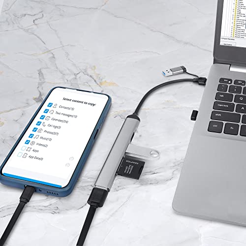【Hub USB-C 5 in 1】 Estendi una porta USB 3.0 a velocità di cena, due porte USB 2.0, uno slot per schede SD menmory e uno slot per schede momory TF da una porta USB di tipo c/USB a