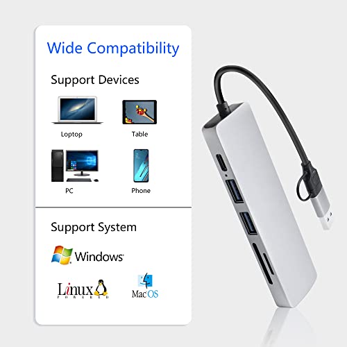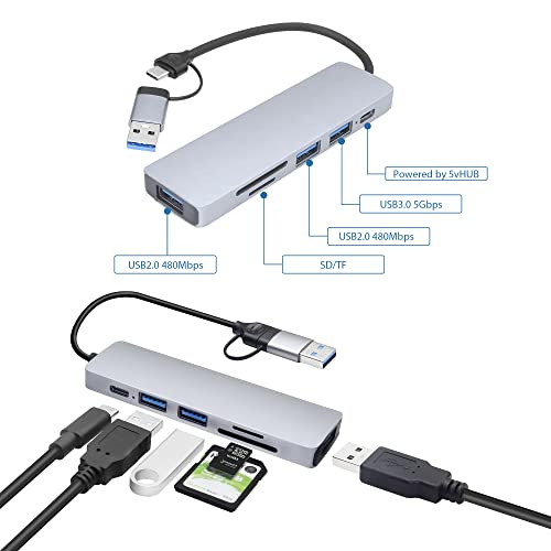 【Design 2 in 1】 Hub multiporta da USB C a USB, convertire l'interfaccia USB A tramite l'interfaccia di tipo c, questo può essere utilizzato come dispositivo con porta USB C o USB A, collegare il telefono e il laptop per mouse, tastiera ecc., SD/ Lettore di schede TF Uso di dispositivi USB.