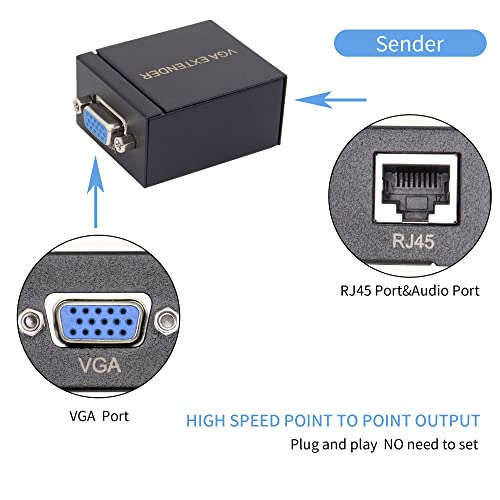 【Plug and Play】 Adattatore di estensione VGA, hai solo bisogno di un cavo in rame puro cat5e/cat6 per completare il cavo del segnale VGA converte rj45, non c'è bisogno di guidare, basta collegarlo e usarlo e goditi una trasmissione del segnale stabile e ad alta definizione .
