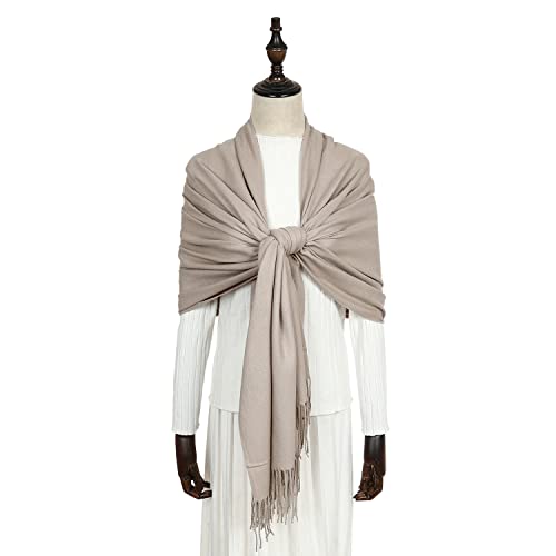 RIIQIICHY - Sciarpa pashmina calda invernale, scialle per donne e uomini, sciarpa grande, lunga e morbida, Cachi chiaro, L