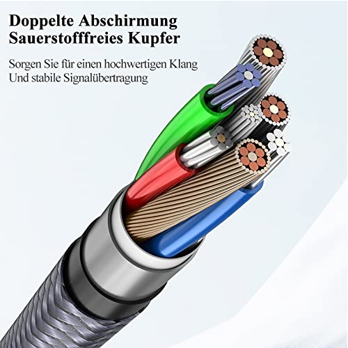 Qualità del suono superiore: il cavo RCA con alloggiamento in lega di alluminio e intreccio di rame offre un'eccellente trasmissione audio, privo di interferenze ad alta frequenza (RFID) e interferenze elettromagnetiche (EMI);