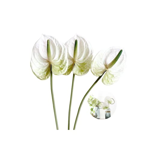 Rikyo Fiori artificiali di giglio di anthurium da 66 cm, 3 fiori tropicali imitazione piante bouquet per centrotavola e decorazioni per matrimoni, festival, composizioni floreali (bianco)