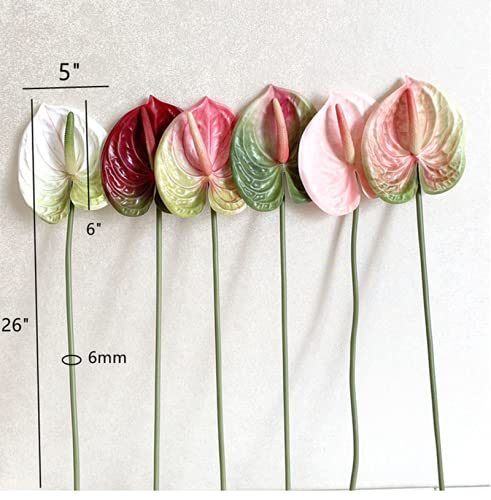I fiori artificiali di giglio di anthurium: altezza circa 66 cm, diametro dello stelo del fiore: 6 mm, la dimensione del fiore è di 12,7 x 15,2 cm, riceverai 3 articoli per confezione. Contenitore non incluso.