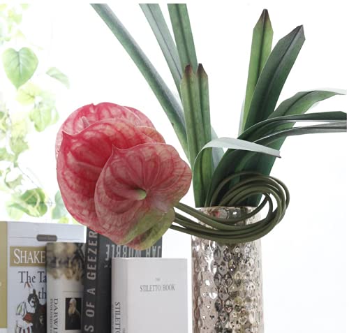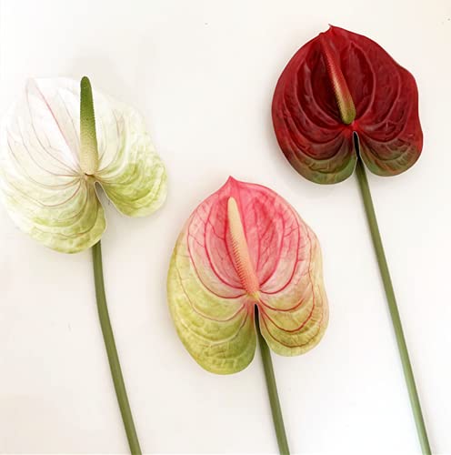 Decorazione da tavolo per casa, ufficio, fiori finti, decorazione bonsai, resistente ai raggi UV, non sbiadisce, fiore artificiale stampa 3D anturio, fiore singolo, decorazione in vaso di piante verdi, accessori per composizioni floreali, forniture fotografiche.