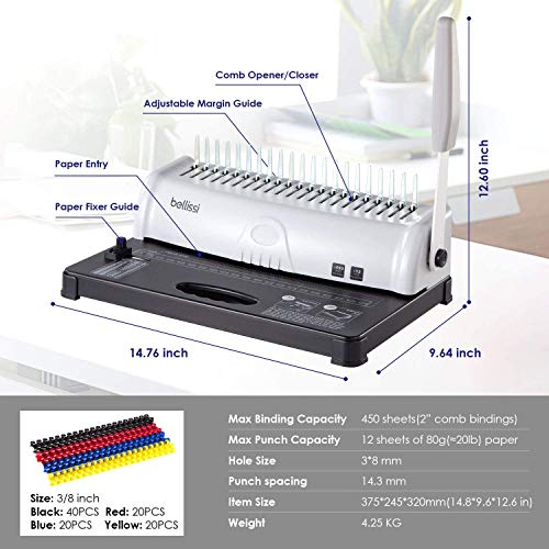 ✅【BINDING MACCHINA BELLISSI: facile da usare: basta allineare, perforare e legare. La rilegatura a pettine aggiunge una finitura professionale ed elegante alle tue presentazioni, cartelle di lavoro, manuali, proposte e altri documenti in ufficio o in classe. La macchina legante può legare fino a 450 fogli e perforare fino a 12 fogli contemporaneamente. Questa macchina per rilegatura manuale a pettine facile da usare è adatta per formato A4 (21 fori), formato A5 (15 fori), formato lettera (19 fori).