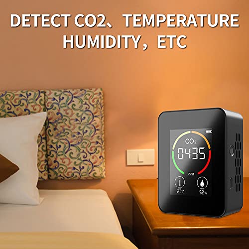 Rilevatore di anidride carbonica (CO2), con monitor e caricatore USB, rilevatore con sensore per la qualità dell'aria e umidità della temperatura, per casa, ufficio, palestra, auto (TVOC, nero)