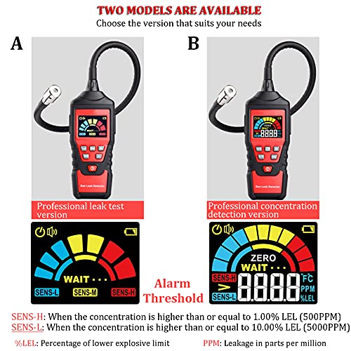 Rilevatore Gas, Rilevatore Fughe Gas Metano, GPL/Gas Naturale/Rilevatore Gas Carbone, Doppio Allarme Sonoro E Luminoso, Display LCD, per Cucina Macchina Campeggio Tubatura,B