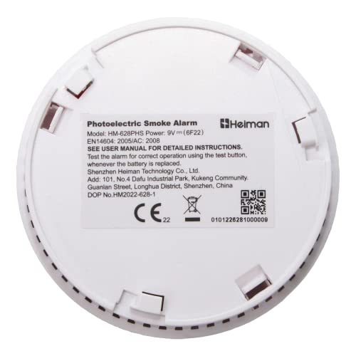 Rilevatore di fumo HEIMAN con batteria 9 V, rilevatore di fuoco, rilevatore di fuoco, certificato EN14604, rilevatore di fumo con allarme antincendio e sensore fotoelettrico da 10 anni