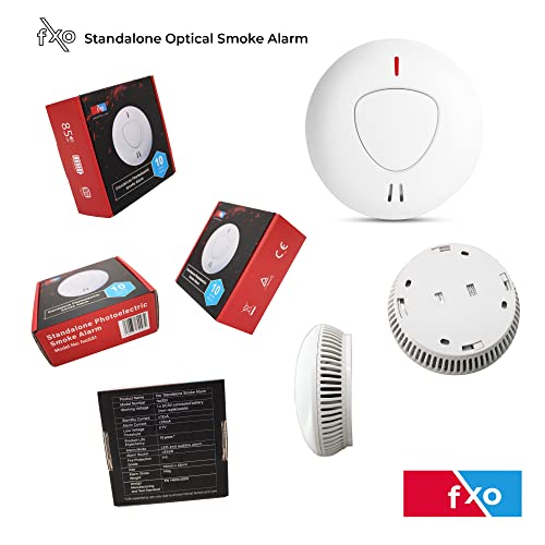 Fxo Rilevatore di Fumo (Pack of 2) - Sensore Fumo Ottico Autonomo con Batteria da 10 Anni - Allarme Antifumo per Casa, Cucina, Ufficio e Garage - Facile da Installare, Senza Cavi