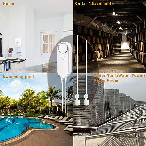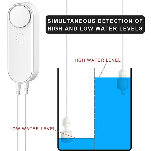 Rilevatore di livello dell'acqua WiFi, Allarmi intelligenti del sensore dell'acqua, Linea di rilevamento separata 2 M, Allarmi doppi sinistro e destro, Monitoraggio remoto delle app, Dual Alert