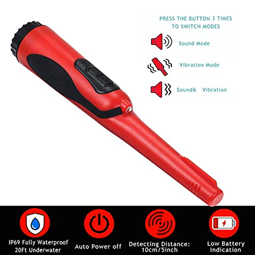 [3 Modalità]: Il Metal Detector viene fornito con modalità vibrazione (silenziosa), modalità audio, vibrazione e modalità audio, 3 modalità possono essere selezionate, quando la sonda è vicina a un oggetto, l'audio e la vibrazione saranno molto forti.