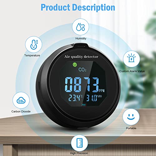 Rilevatore di CO2 S SMAUTOP 0-9999 PPM Misuratore di Anidride Carbonica ad Alta Precisione Monitor Portatile di CO2 con Temperatura Umidità e Funzione di Allarme per Casa, Ufficio, Scuola