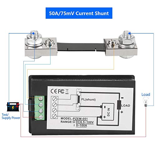 【Funzione Shunt】 Il misuratore di tensione e corrente del display a cristalli liquidi digitali ha uno shunt di corrente nella confezione. La modalità ha uno shunt corrente 50A e uno shunt corrente 100A, che è comodo da usare e risparmia tempo.